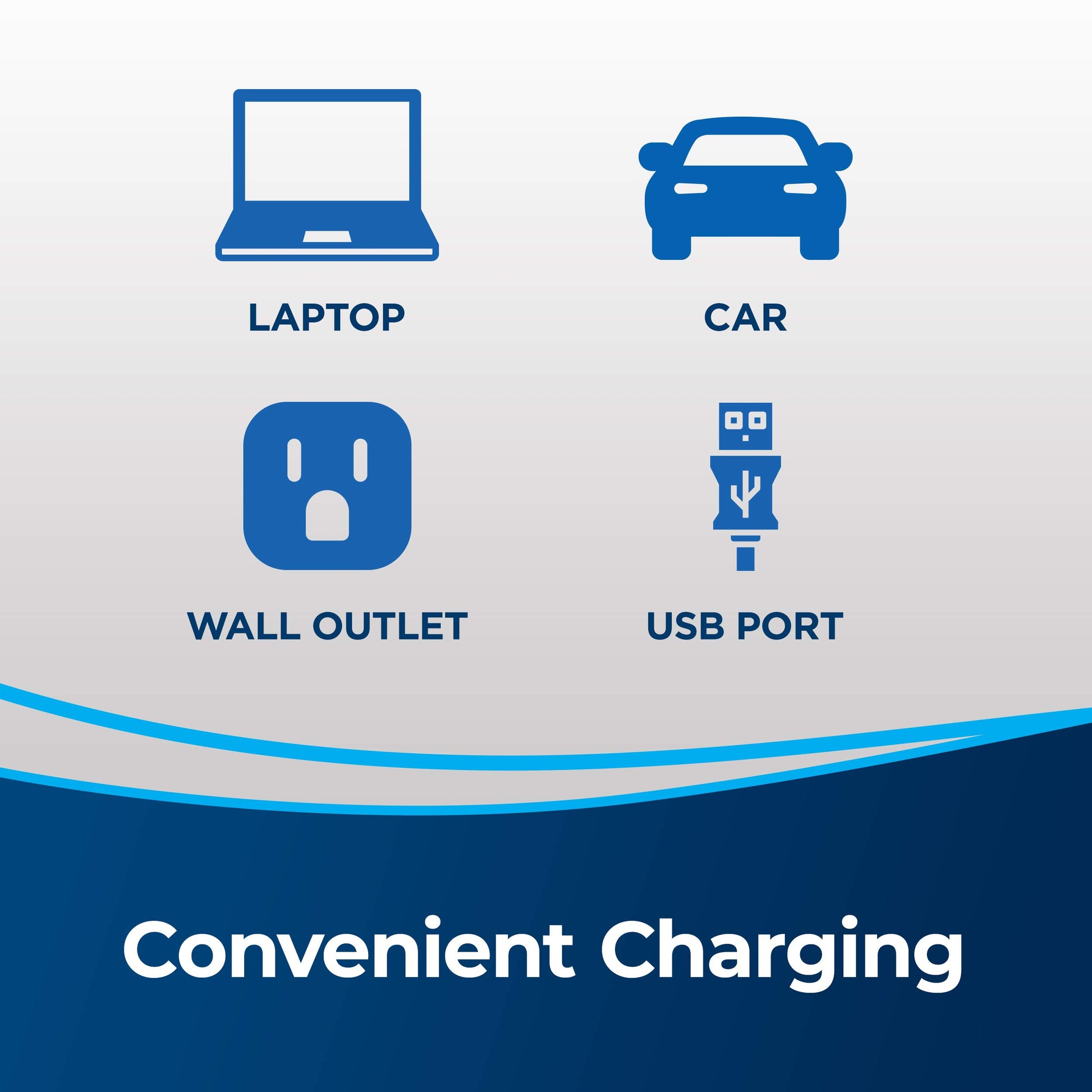 - USB Charger. Charging is convenient and versatile with the standard charger and included USB charging cable. Charge Time 2.5 - 3.5 Hrs
